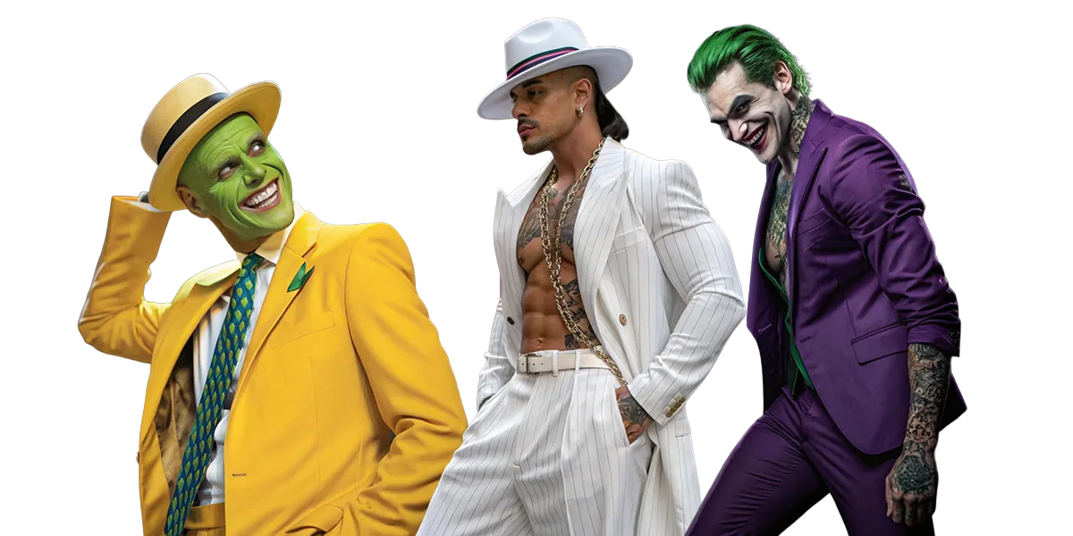 ⛓️ 50 Shades / Dom – 50 Sombras / Amo Dominante | 🎶 Magic Mike – Estilo Magic Mike | 🎅 Sexy Santa – Santa Sexy | 🎭 The Mask (Jim Carrey) – La Máscara (Jim Carrey) | 💘 Latin Lover – Amante Latino | 🎩 Pachuco – Pachuco | 🏨 Hotel Security – Seguridad del Hotel | 🚑 EMT – Paramédico / Urgencias | 🦸 Superhero (Batman, Spiderman) – Superhéroe | 🦹 Villain (Joker, Bane) – Villano | 🧛 Vampire – Vampiro | 🐺 Werewolf – Hombre Lobo