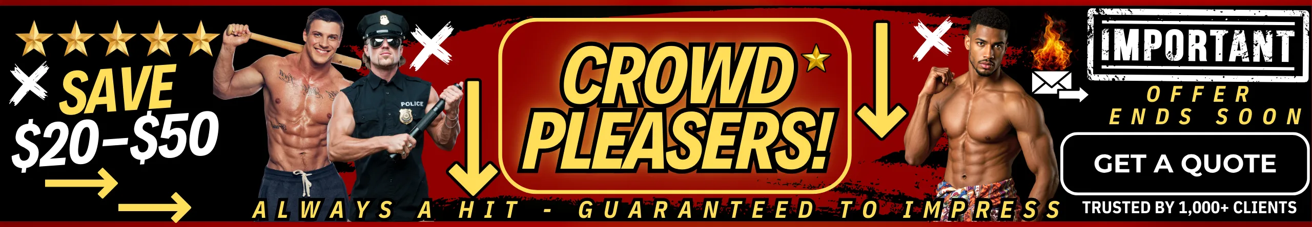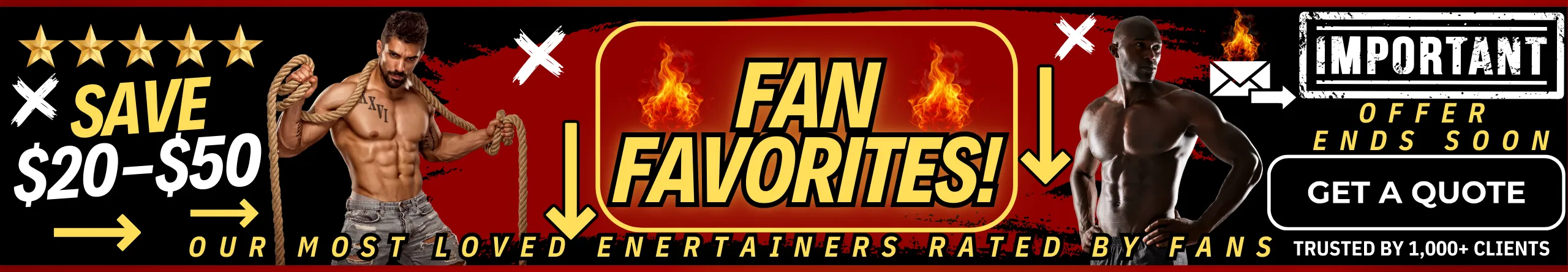 Looking to hire professional male strippers for your next celebration? Our elite male entertainers are available for bachelorette parties, despedidas de soltera, ladies’ nights, girls’ night out, birthday parties, divorce parties, LGBTQ+ events, and private parties nationwide. We also offer upscale party services including male butlers, cabana boys, shirtless bartenders, and sip & paint male models, all carefully selected for their looks, personality, and professionalism. Whether you’re booking one entertainer or a full male revue experience, we make it easy to find the best male entertainers near you for a fun, stylish, and unforgettable event.